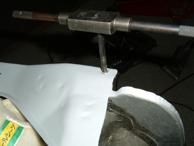 ←その9 という事で9月17日〜18日の休日に工場へ でドアが微妙にへこんでいる。はっきりしたへこみはまだ直しやすいが全体に微妙にへこんでいる場合はとても難しい(と思う)で工場のオヤジ(面と向かっては言わないけど)に聞くと「これは板金しないとパテ硬化の熱でひずむからだめだぞ」と・・板金後「自分でパテを付けてみろ」というので私がパテを塗ると・・・ 「いや〜素人だから下手なのは仕方がないけど、お前下手過ぎるわ・・そんなやり方でよくここまで仕上げたなその努力はかうわ」と・・ ほめてるのかけなしてるのかわからん発言(笑)で結局やり直してもらったのだがプロと素人の差をまざまざと・・まずパテ台でこねた時点でぜんぜん違う私の場合は(子供の泥遊び状態)、プロの場合(まるでパテが表面張力でももったかのようにきれいに丸まった、さらに巣穴なしへら跡もなし)、私ならおそらく日曜日4回分の作業・・・ |